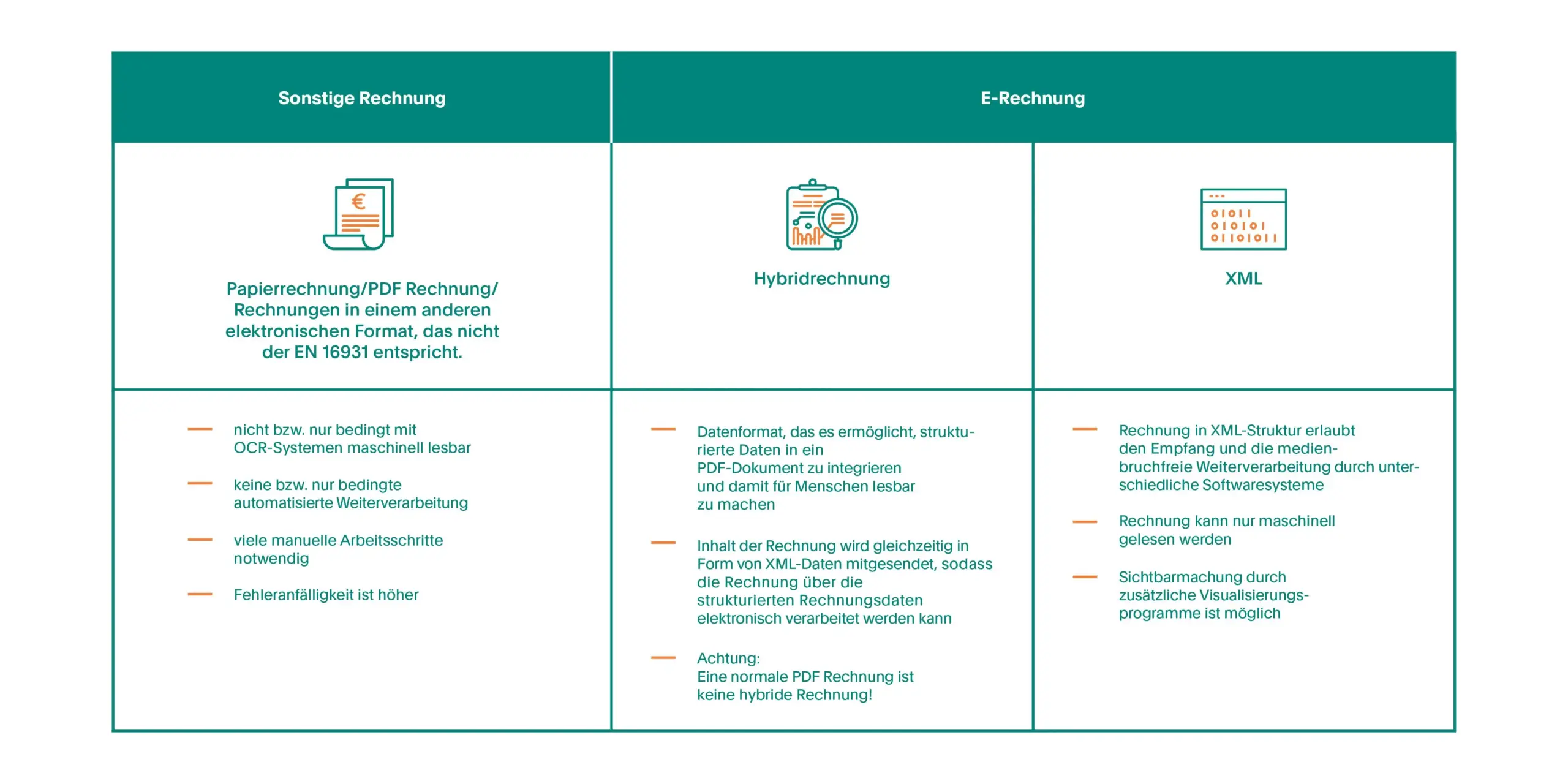 Achtung: Nicht jede Rechnung, die auf elektronischem Weg versendet wird, ist schon eine E-Rechnung.